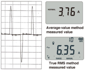 Digital multimeters implement two types of measurement: mean-value measurement and true RMS measurement. The two methods yield significantly different measurement results for current waveforms, which are often distorted. For accurate measurement, it is necessary to use an instrument with true RMS capability.