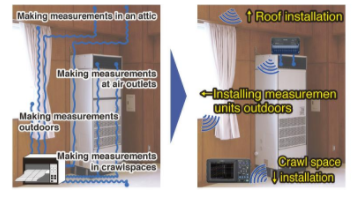 Only the measurement unit needs to be installed in the vehicle. Wires do not protrude outside the vehicle, allowing the windows and doors to be closed so that the vehicle can be tested under airtight conditions.