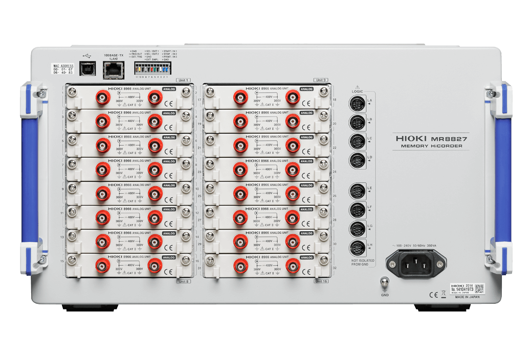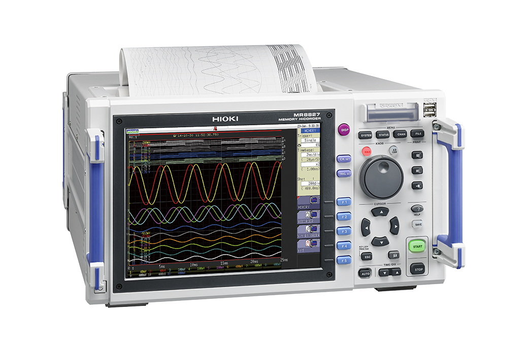 Hioki Memory HiCorders are high-speed waveform monitoring and recording devices that can simultaneously measure multiple physical phenomena such as voltage, current, temperature, vibration, weight, acceleration and rotation due to complete isolation between channels and from each channel to the ground. More than a digital oscilloscope, the MR8827 data acquisition (DAQ) logger houses plug and play input modules to meet applications such as test runs after scheduled maintenance of railway cars to verify voltage command signals, motor current, cabin speed. and brake pressure.